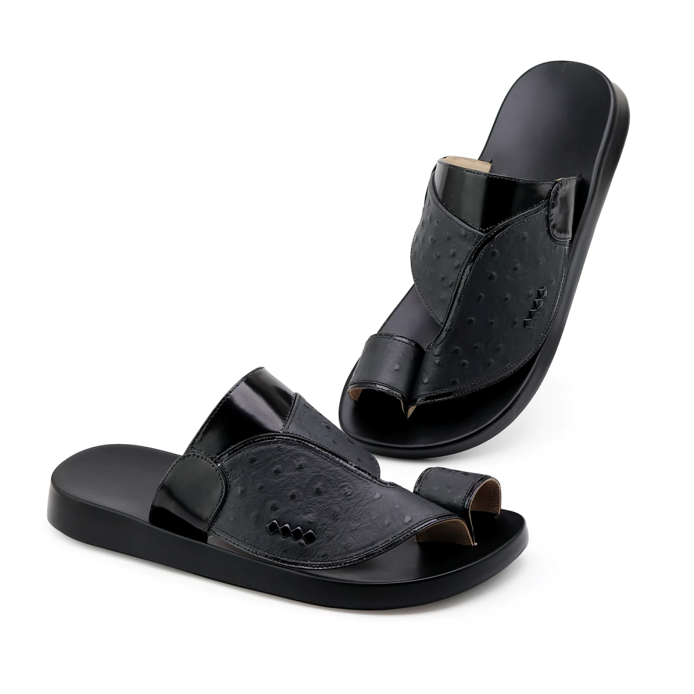 حذاء شرقي جلد نعام أسود هندي، يتميز بتصميمه الفاخر الذي يعكس الفخامة والأناقة. مصنوع من جلد النعام الأسود عالي الجودة الذي يمنحك مظهراً أنيقاً وعصرياً في كل مناسبة. هذا الحذاء يجمع بين الراحة الفائقة والجودة العالية، مما يجعله خياراً مثالياً للأشخاص الذين يهتمون بالتفاصيل ويبحثون عن التميز في كل خطوة.