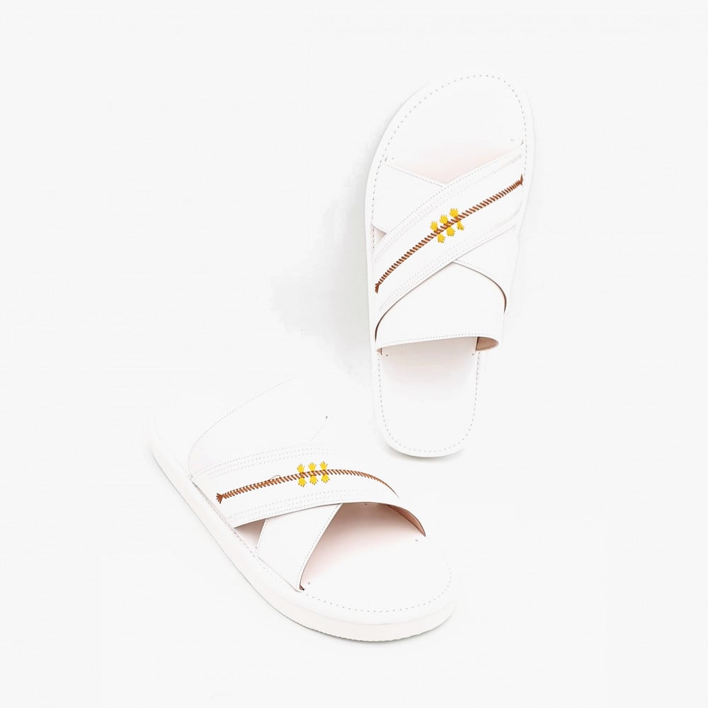 حذاء شرقي كاجوال أبيض بتصميم أنيق وبسيط، مزين بتطريز فاخر يمنحه لمسة من الفخامة والتميز. مصنوع من خامات عالية الجودة لتوفير أقصى درجات الراحة والمتانة، مما يجعله خيارًا مثاليًا للإطلالات اليومية والمناسبات الكاجوال. تصميمه العصري يجمع بين البساطة والرقي، ليعكس ذوقك الراقي ويضفي لمسة أنيقة على إطلالتك