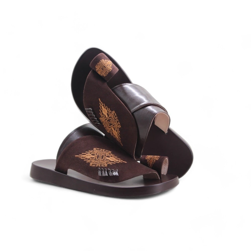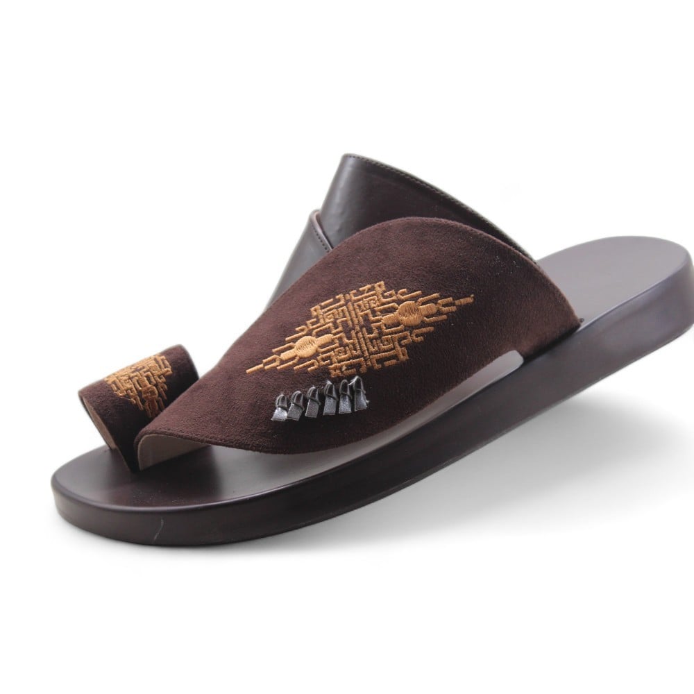 حذاء شرقي مطرز بني.