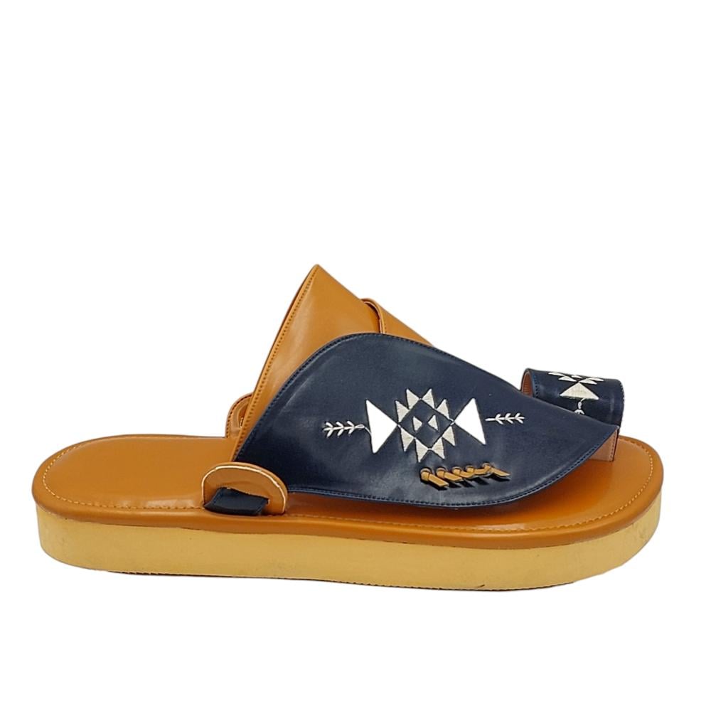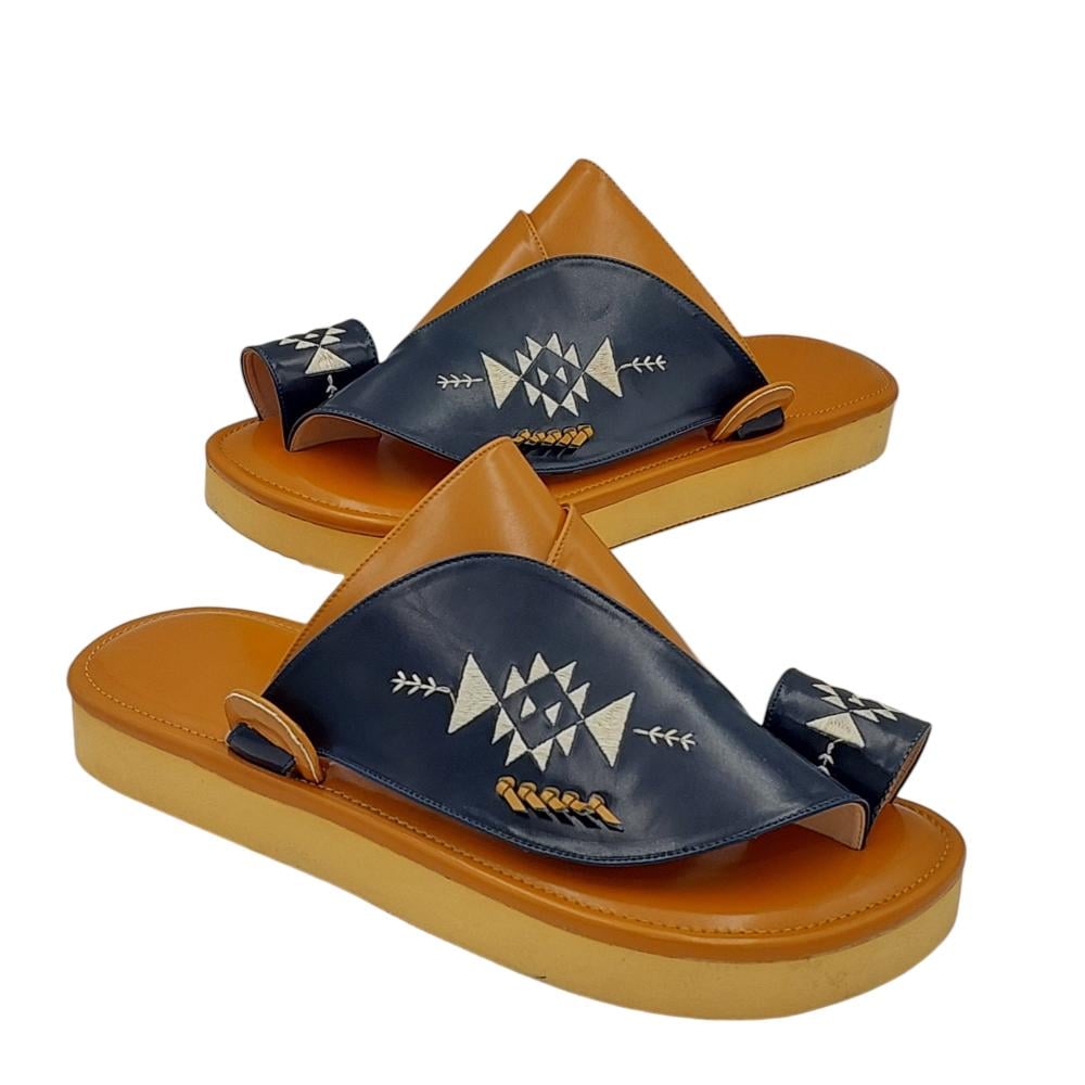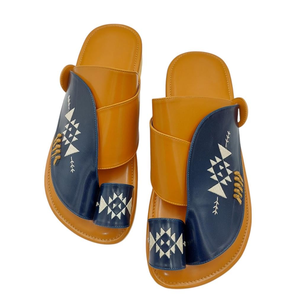 حذاء شرقي مطرز كحلي مع اصفر مرتفع1
