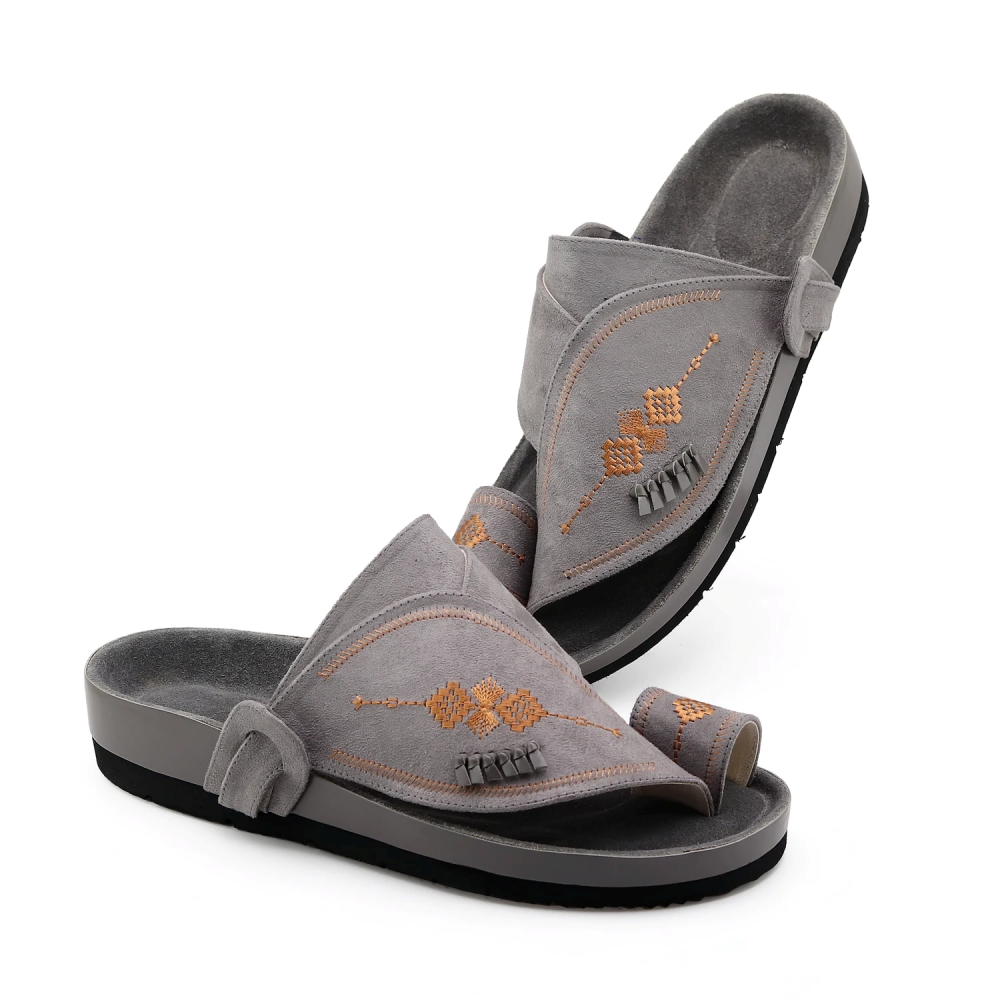حذاء شرقي مخمل رصاصي فاخر، يجمع بين الأناقة العصرية واللمسة الشرقية الراقية. يتميز بنسيج المخمل الناعم بلونه الرصاصي الأنيق، مما يضفي مظهرًا فخمًا ومتوازنًا يناسب جميع المناسبات الرسمية وغير الرسمية. مصنوع بعناية من خامات عالية الجودة لضمان راحة تدوم طويلًا وتصميم يعكس الذوق الرفيع والتميز في كل خطوة.