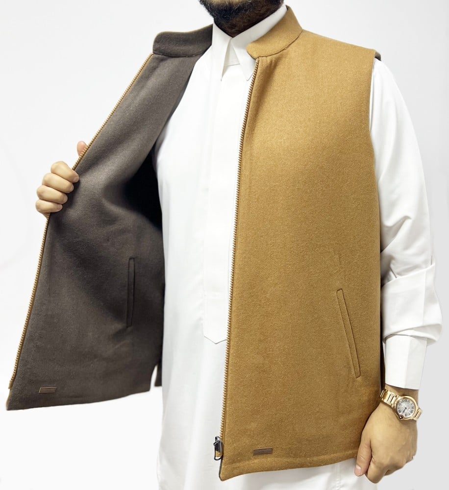 سديرية صوف جوخ وجهين لون عسلي وبني فاتح